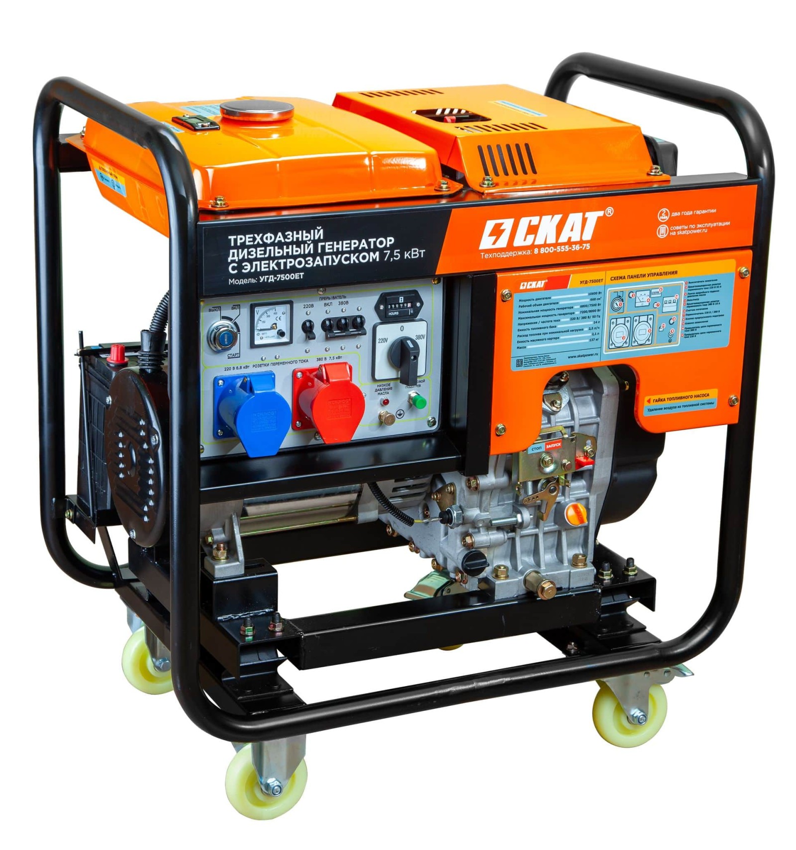 Особенностью дизельной генераторной установки УГД-7500ЕТ, является возможность подключения однофазных потребителей с потребляемой мощностью до 6,8 кВт. Электростанция оснащена комплектом колес, для удобства перемещения.