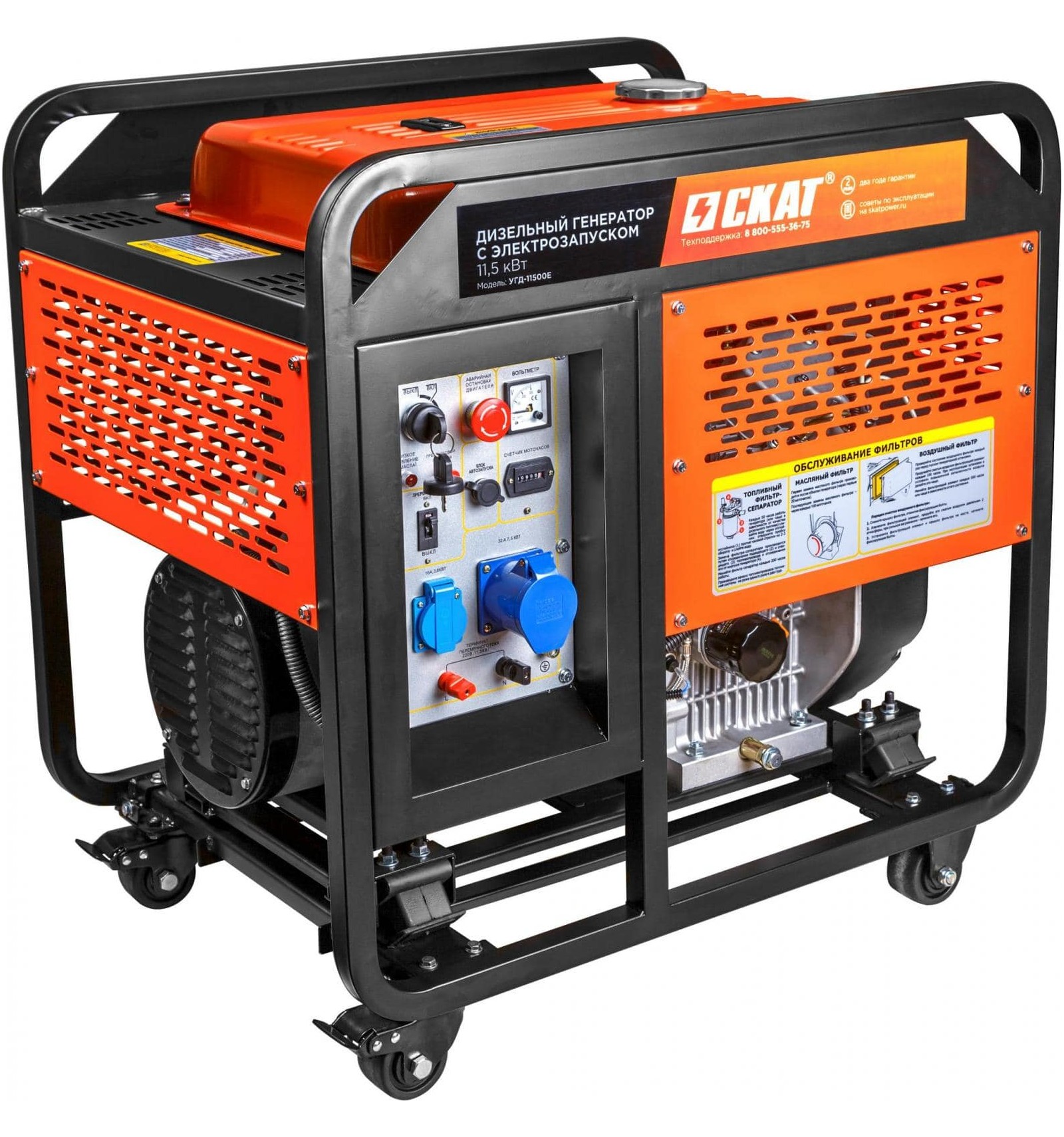 Дизельный генератор УГД-11500Е номинальной мощностью 11,5 кВт обеспечит электроэнергией дачу, коттедж, строительную площадку или даже небольшой цех и станет отличным помощником горнопромышленникам, лесозаготовителям, аварийным, монтажным бригадам. Функция электрозапуска позволяет запускать генератор поворотом ключа.
