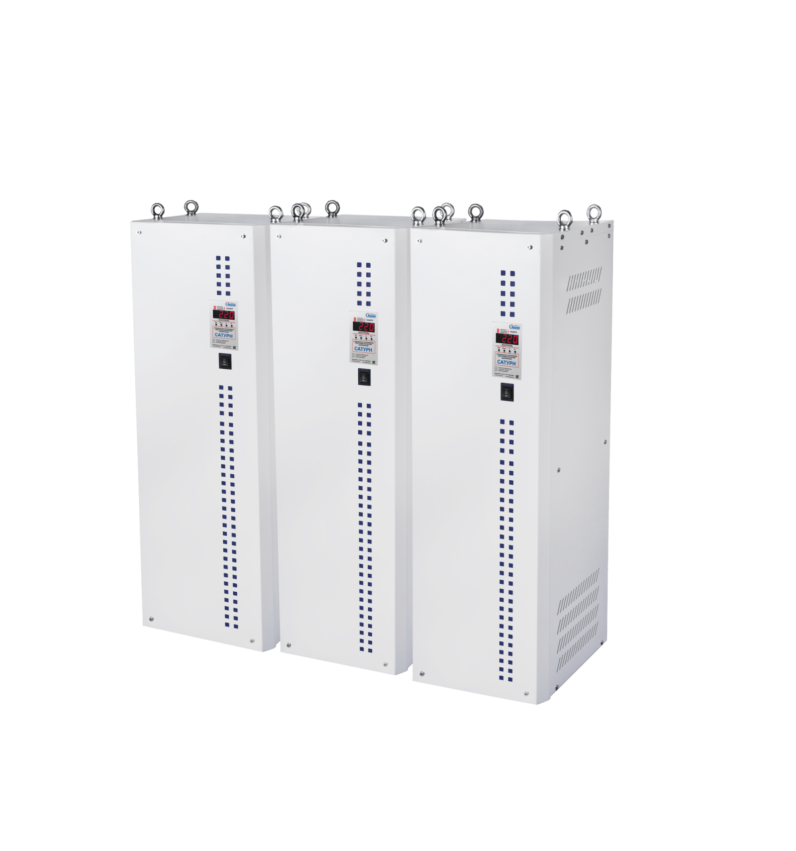 Промышленный трехфазный стабилизатор напряжения САТУРН серии 1000 электромеханического принципа работы - для защиты оборудования от колебаний напряжения.