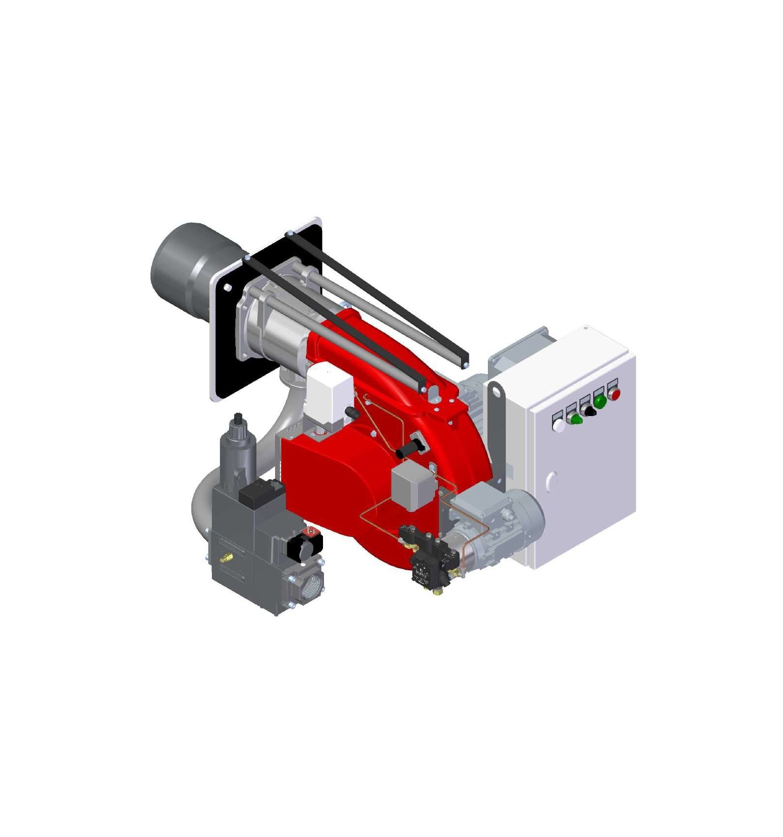 Двухступенчатая горелка комбинированного типа, работающая на двух видах топлива – природный газ и дизельное топливо, оснащена удлиненной пламенной трубой и газовой рампой.