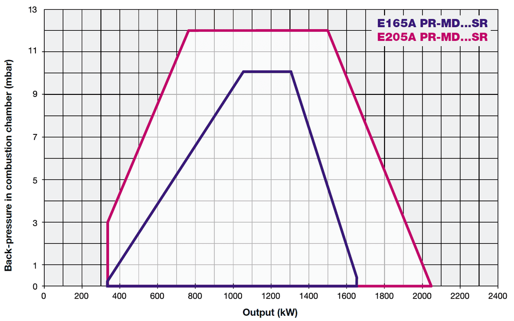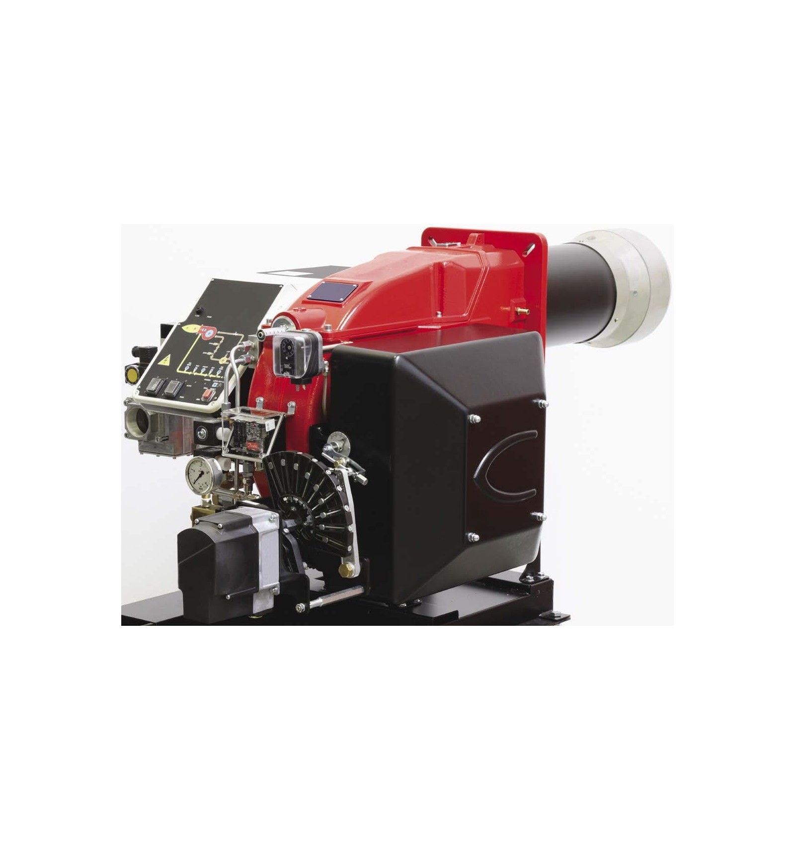 Горелки оснащены высокоэффективной камерой сгорания, спроектированной для достижения максимальной эффективности при работе на природном газе; голова сгорания также оснащена перепускным патрубком, которой в сочетании с регулятором давления обеспечивает коэффициент регулирования (соотношение) 1:3.
