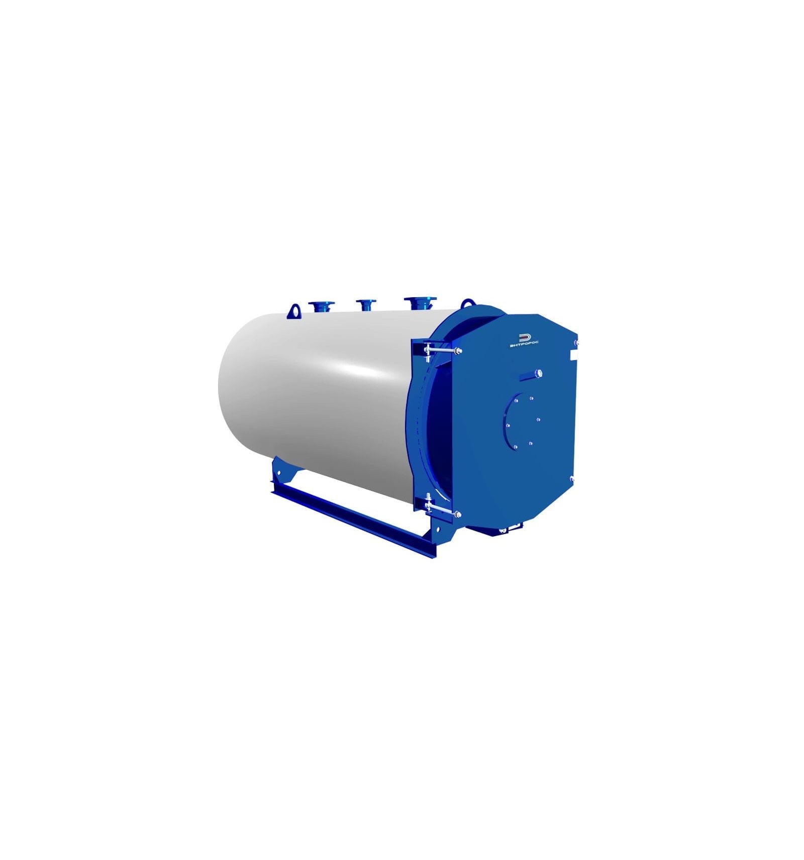 Камера сгорания (первый ход газов) образована жаровой трубой и торосферическим днищем. Конвективные поверхности нагрева – дымогарные трубы второго хода, расположены вокруг камеры сгорания. Для увеличения интенсивности теплообмена дымогарные трубы оснащены спиральными вставками – интенсификаторами. Поворотная камера для дымовых газов (из первого во второй ход) образована передней трубной доской и специально сформированной футеровкой фронтальной крышки стального котла.