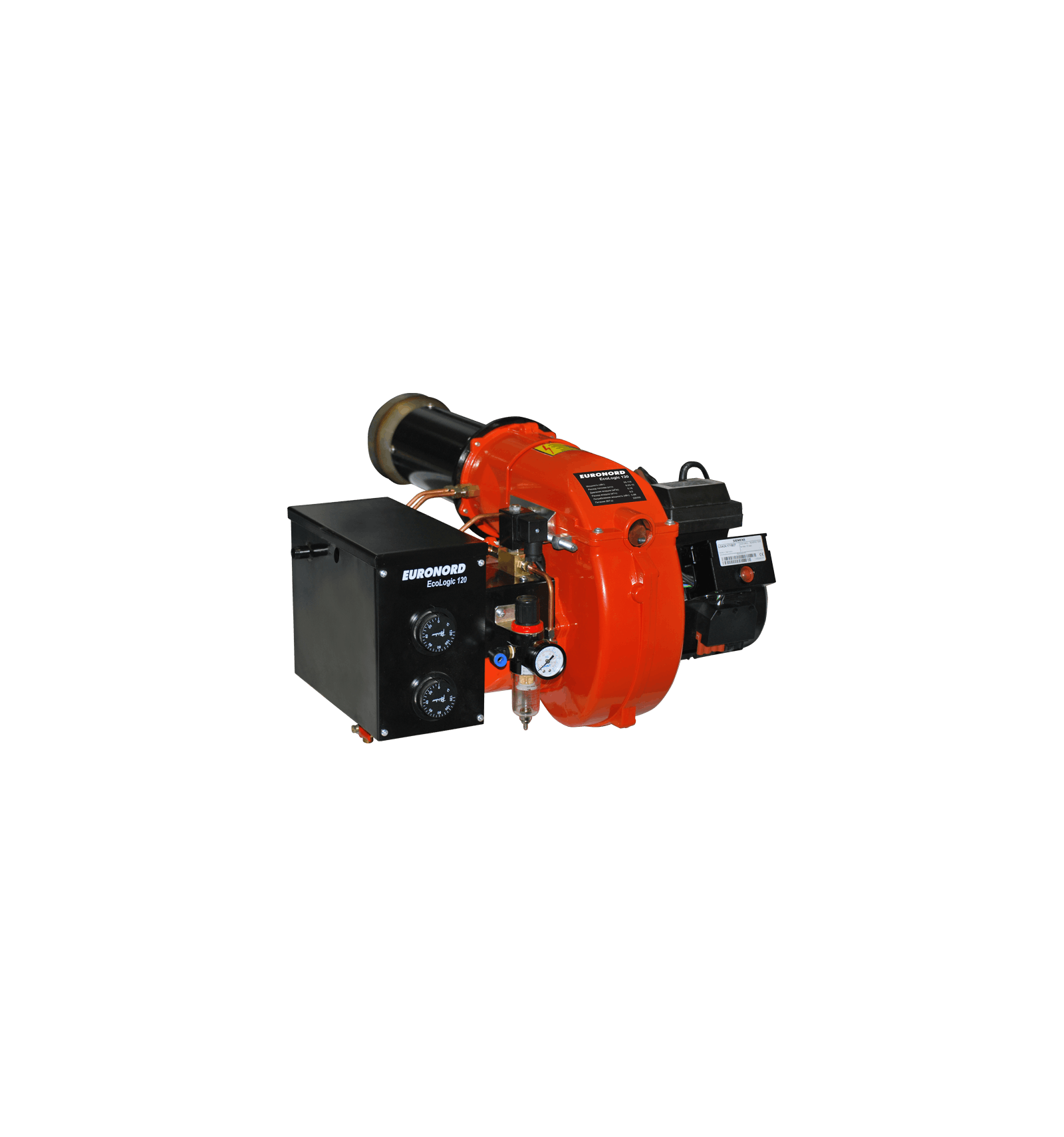 Горелка EURONORD EcoLogic предназначена для работы с мобильными или стационарными теплогенераторами, водогрейными котлами любых производителей, расположенными в защищенных от атмосферных явлений помещениях.
